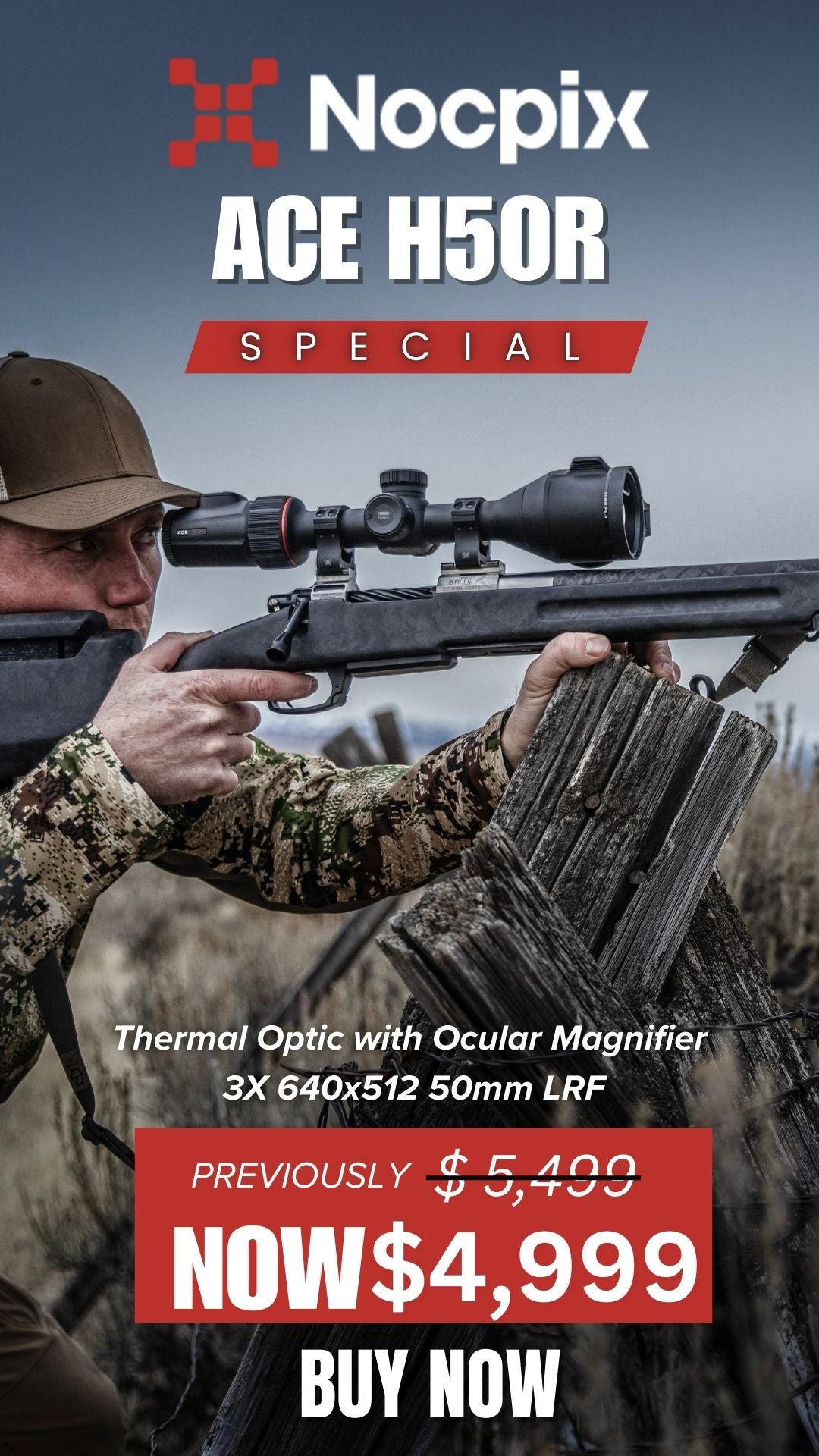 The ACE is built around the idea of combining leading user-requested features in a streamlined optic that balances advanced capability with ease-of-use in the field. Designed to feel like a traditional day optic, the ACE is compatible with bolt action or semi-automatic rifles using standard 30 mm mounts and rings. The combination of an internal USB-C charging battery and a removable 18650 style rechargeable battery allows users to hot-swap batteries in the field to run indefinitely. A 1-3x ocular magnifier provides optical magnification of the 2560×2560 round AMOLED display inside the eyepiece. The Vision+ system pairs this high-resolution display with a 15 mK NETD sensor for an incredibly detailed and precise image. The 1,300-yard capable laser rangefinder on the ACE is integrated directly into the 50 mm germanium objective lens. In addition to streamlining the body design and reducing bulk, this allows for improved horizontal alignment of the infrared laser with the viewing system.